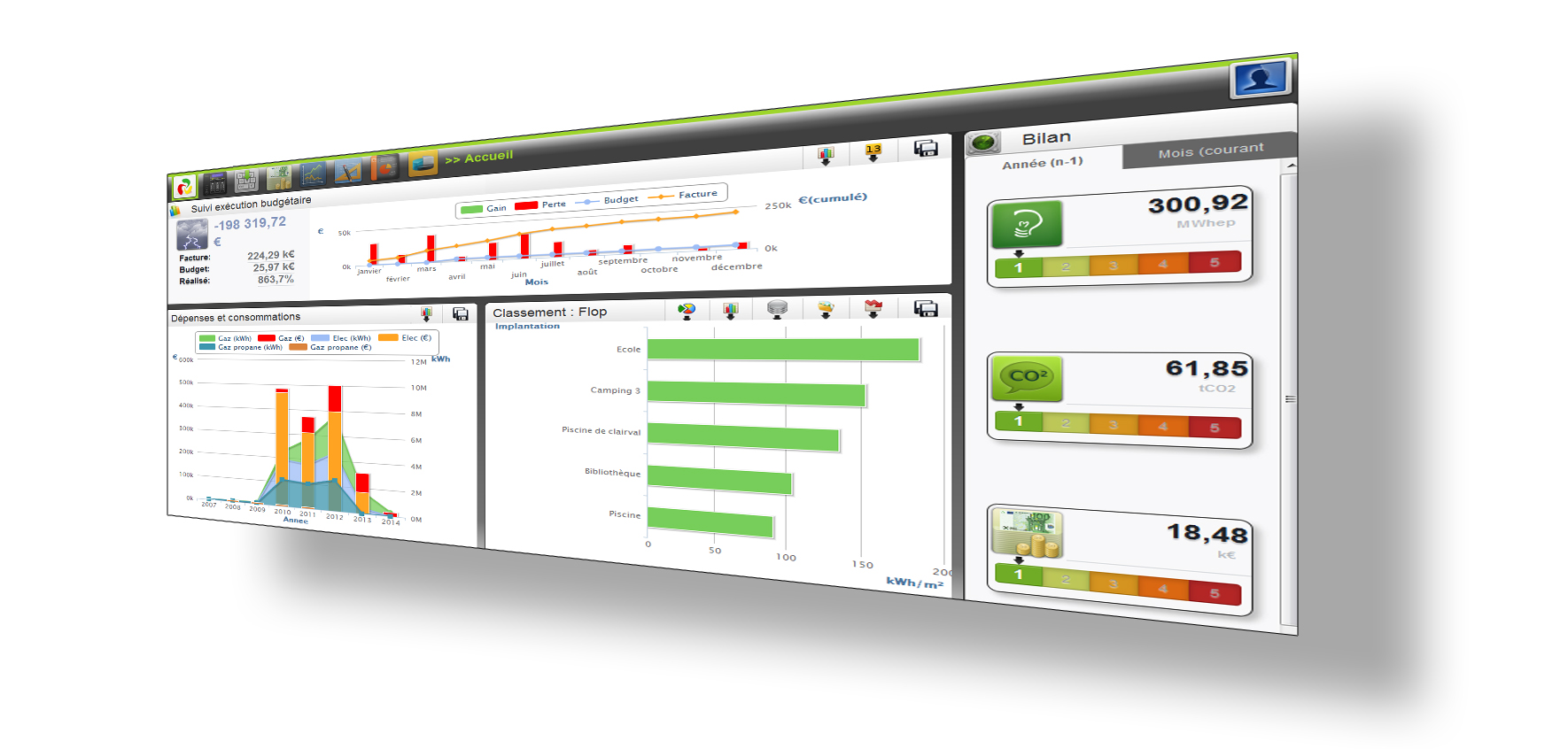 Ce système, qui s’inscrit pleinement dans le cadre de la norme ISO 50 001, est composé d’une plate-forme Web intégrée SUMBA et d’une version mobile (Tablette/Smart Phone), dédiée à la collecte des données de terrain (bâtiments, installations, équipements).